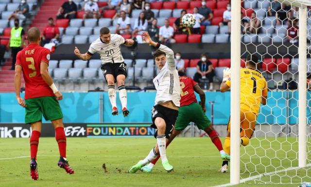 欧冠决赛,多少对本场的胜负产生了一定的影响。哈弗茨、韦尔纳和吕迪格在欧冠赢了鲁本·迪亚斯和贝尔纳多·席尔瓦。坎塞洛在欧冠决赛未能上场,因为新冠阳性,欧洲杯开打前又被达洛特取代。哈弗茨的理论位置并不是箭头,韦尔纳在欧冠决赛为哈弗茨拉出了空当,同理,格纳布里的作用也是如此。哈弗茨对德国的头三个进球都有贡献,迫使迪亚斯乌龙;接应穆勒二次传中造成葡萄牙门前混乱;最后把握戈森斯传中,打开了代表德国在大赛的进球账户。德国从之前可能出局的阴影中走了出来,不仅出线希望大增,甚至可能取代法国头名出线。